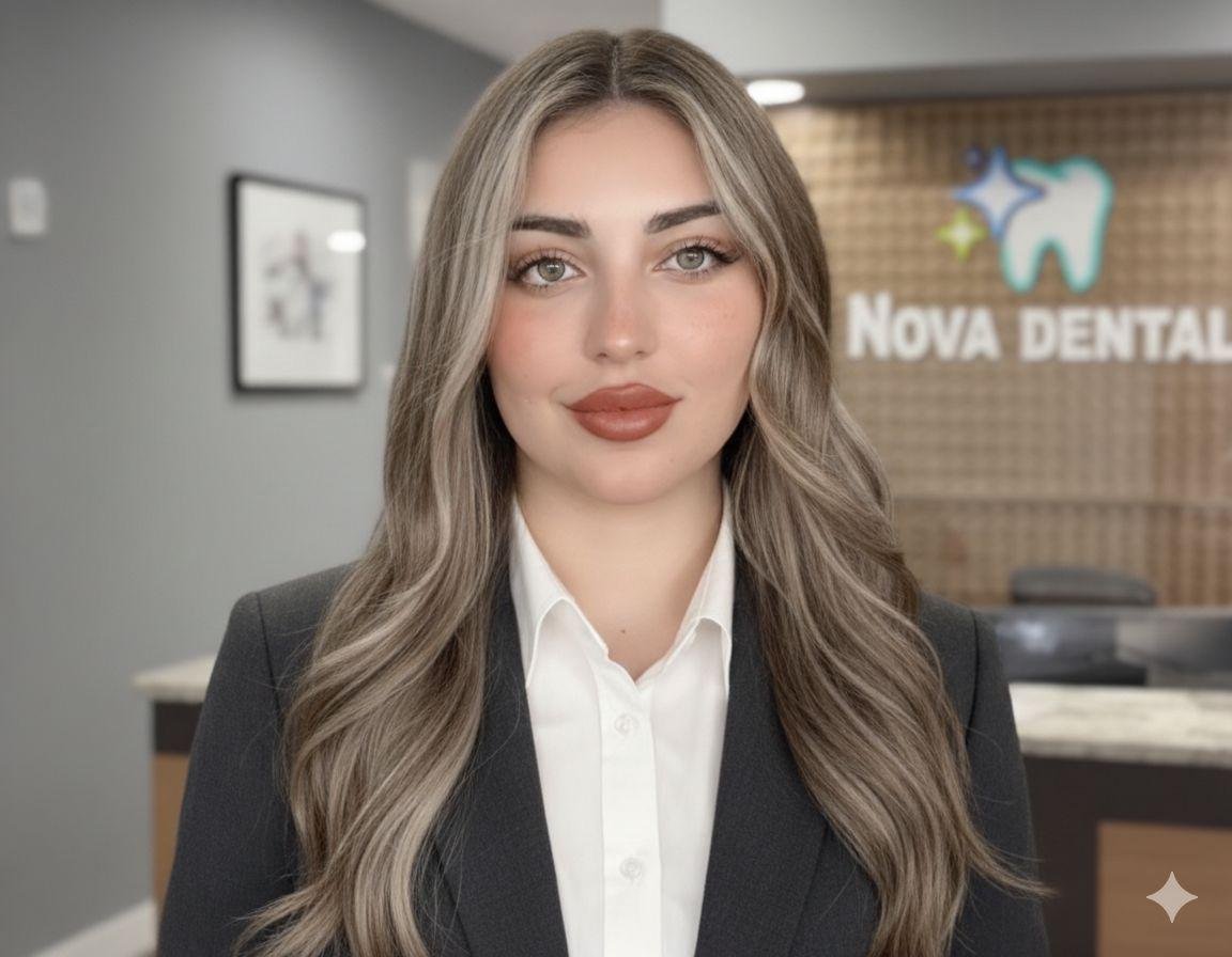 Aynoor Mohammed serves as both Office Manager and PR Manager at Nova Dental, where she oversees daily operations and ensures that every patient feels welcomed and cared for.she also leads Nova Dental’s community outreach and public relations efforts, representing the practice at schools, and local events to promote oral health education and strengthen community relationships.”